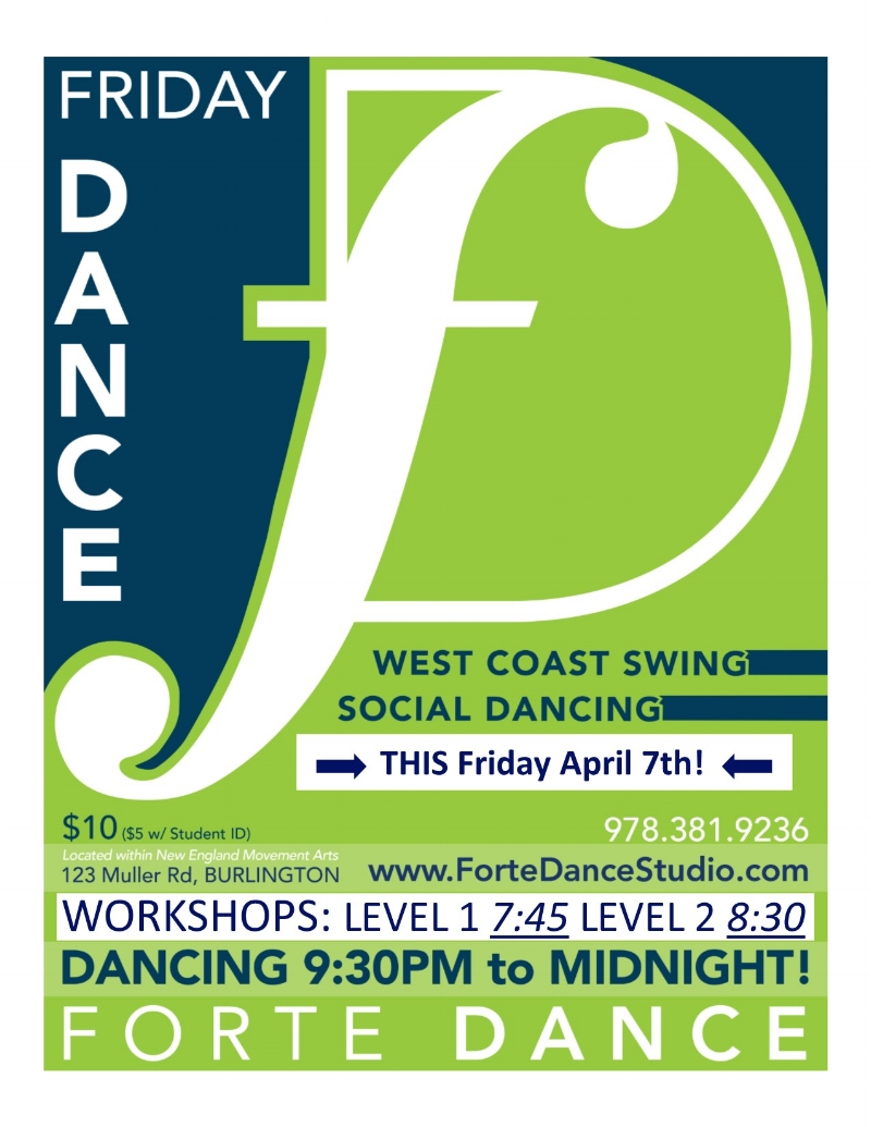 Hey y'all! Please remember that this month's Forte Friday Funday happens THIS Friday April 7th! In observance of the Jewish and Christian holidays on the 14th of April, this month's dance will occur a week earlier than usual.